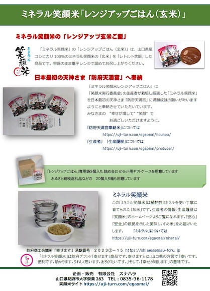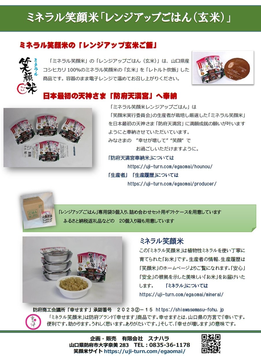 ミネラル笑顔米「レンジアップごはん(玄米)」